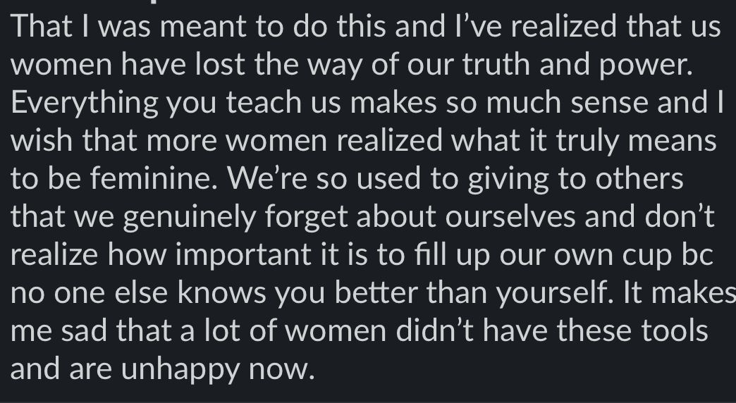 & the influencers that watched 1 video online and are sharing "feminine energy hacks" have nothing on the content in here. Just Sayin... with love💋